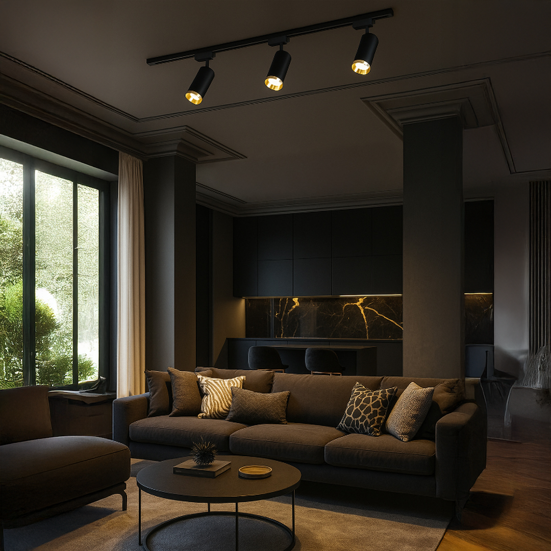 Spot Mica pentru șină, negru cu auriu, 1xGU11