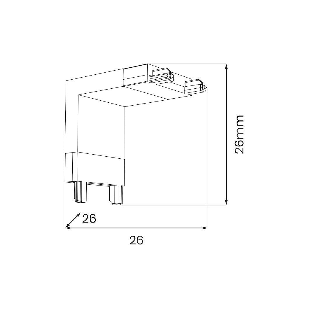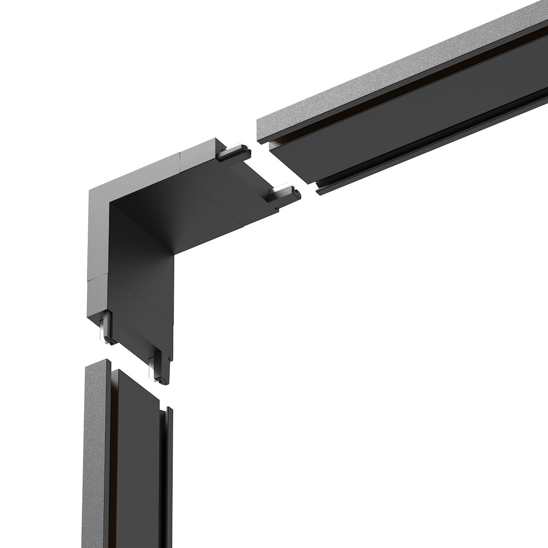 Conector L inferior, pentru șină magnetică subțire, negru