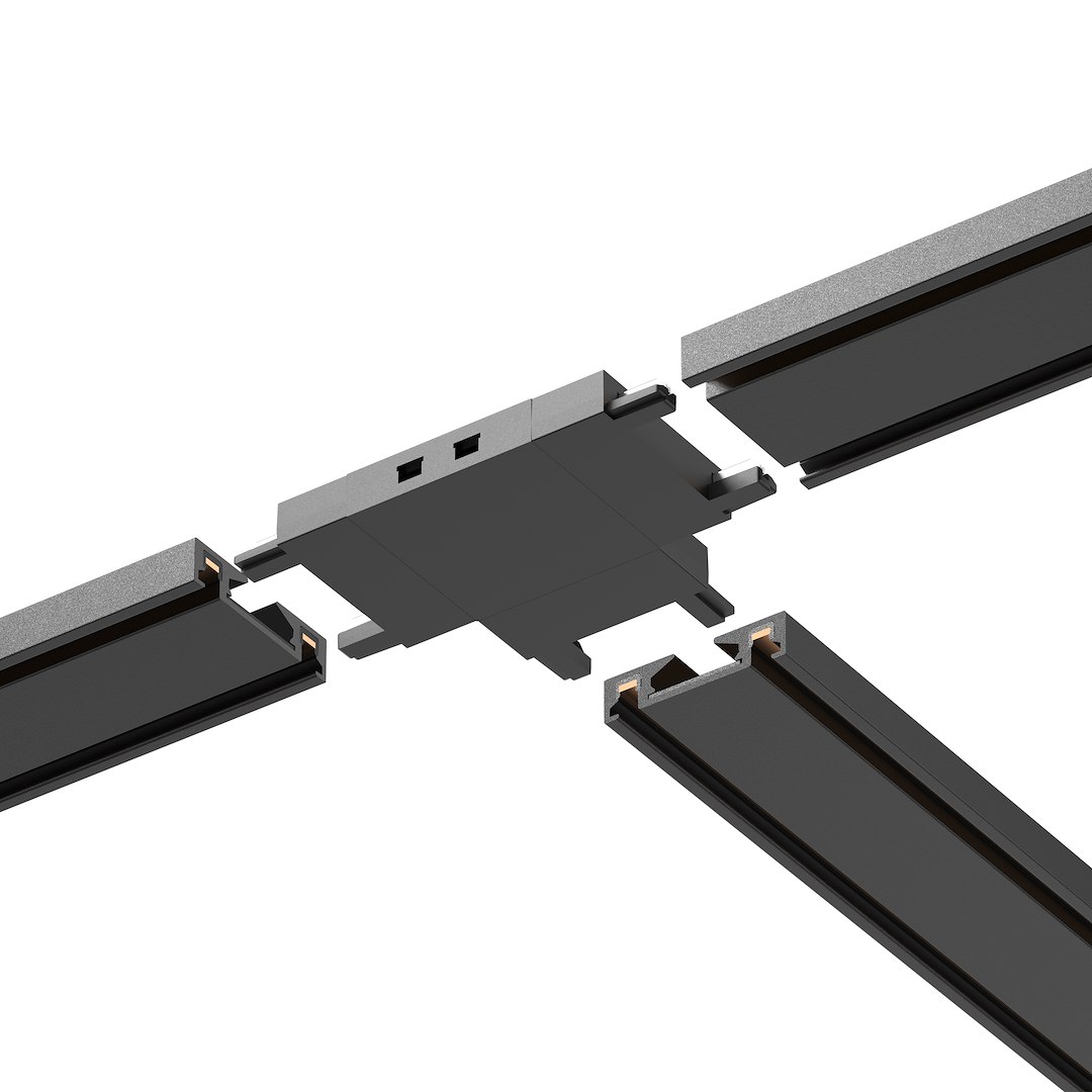 Conector T pentru șină magnetică slim, negru