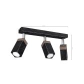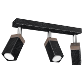 Plafonieră Solo Sawn, negru, lemn patinat, 3X Mini GU10