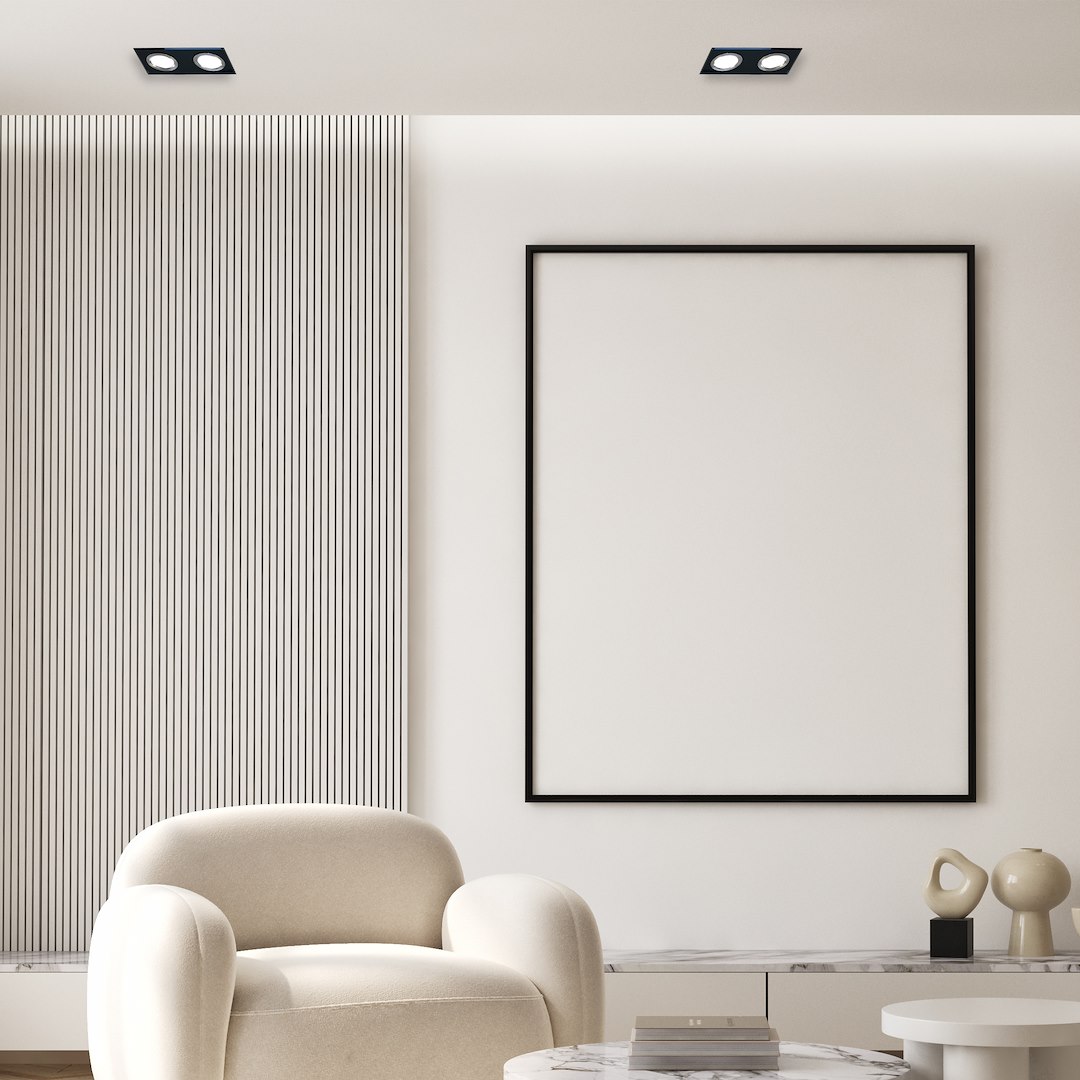 Spot încastrat sticlă pătrat, 2xGU10, negru