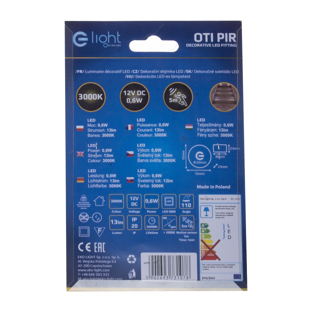 Lampă OTI pentru scară, lumină caldă 3000K, 12V, cu senzor de mișcare